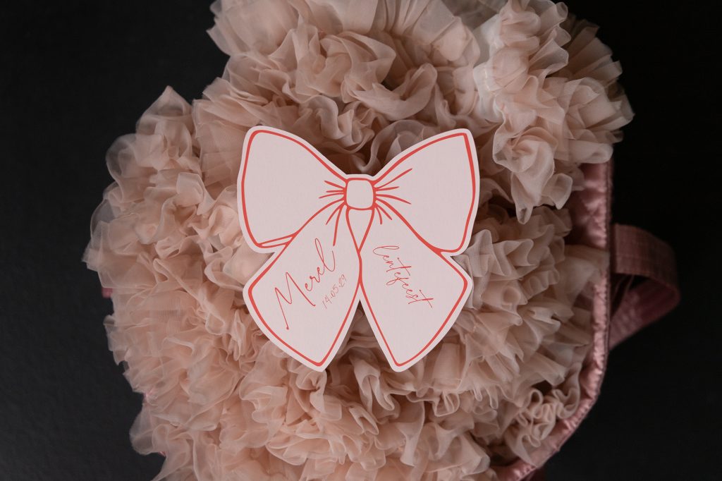De strik is helemaal terug, en hoe! Of hij nu verfijnd en subtiel is of net groot en opvallend: de strik geeft elke communie- of lentefeestkaart, bedankje of geschenk meteen een feestelijke uitstraling. In zachte kleuren of afgewerkt met luxueuze folie… de keuze ligt volledig bij het feestvarken. Of wat dacht je van een uitnodiging of caketopper in deze trendy vorm? Met de strik kan het echt alle kanten uit.