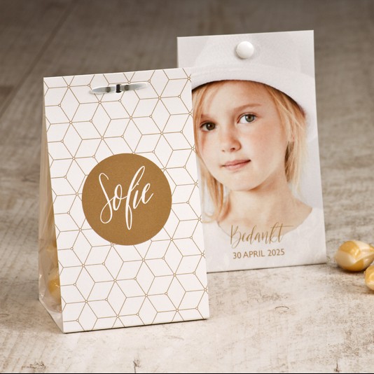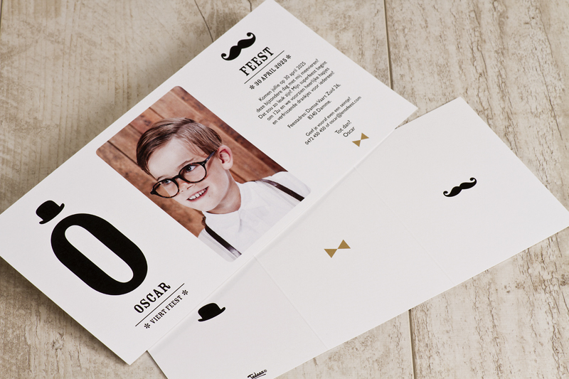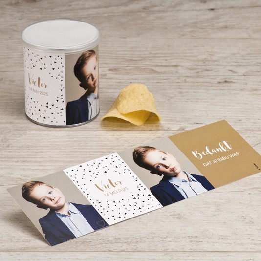 Ben je fan van een modern en strakke styling? Ook die communietrend vinden we terug in 2018. Communiekaartjes met een geometrisch motiefje of een trendy accentje zoals een snorretje zijn heel erg in dit jaar! Je personaliseert ook deze kaartjes met eigen tekst en foto om er zo je eigen versie van te maken.