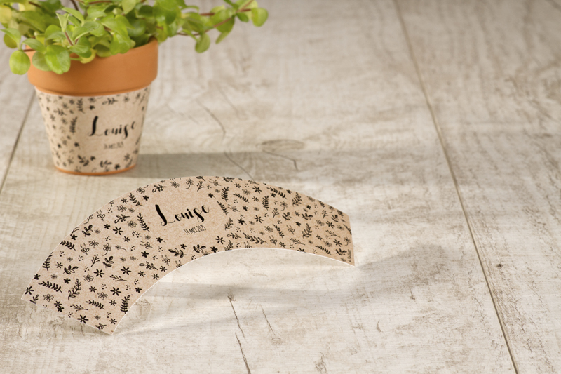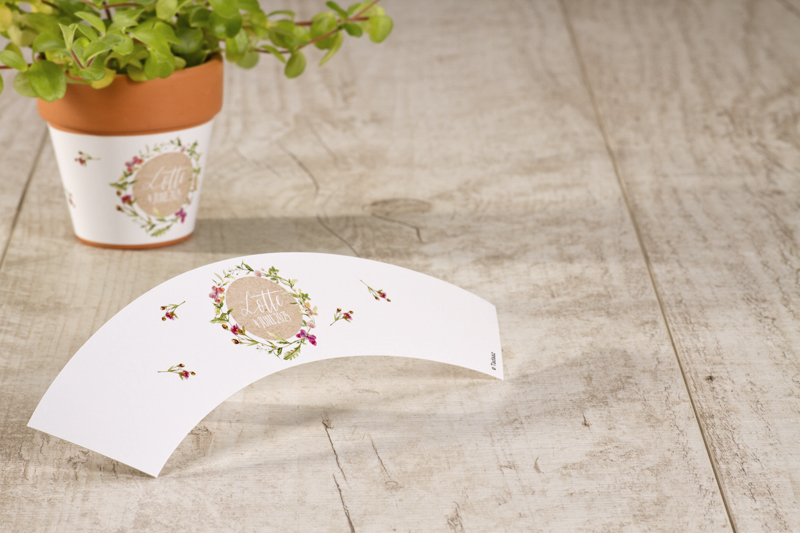 Ook voor de bedankjes is het bloemmotiefje een perfecte keuze. Kies voor een kubusdoosje of een bloempotwikkel die je helemaal personaliseert. Welke plantjes je kiest of hoe je de doosjes opvult, kies je uiteraard helemaal zelf!