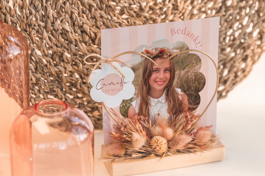 Je trotse kind viert binnenkort de eerste communie, plechtige communie of het lentefeest. Jullie popelen al tot de grote dag daar is, maar feesten doe je natuurlijk niet alleen. Vergeet daarom zeker geen geschenkje te voorzien voor de bijzondere gasten die je zoon of dochter in de bloemetjes komen zetten. Terwijl je op je communiekaartje alle knappe communiefoto’s in de kijker zet, zorgen gepersonaliseerde bedankjes ervoor dat je gasten extra lang nagenieten van jouw feest. Maar hoe begin je daar nu aan: je communiebedankjes zelf maken?